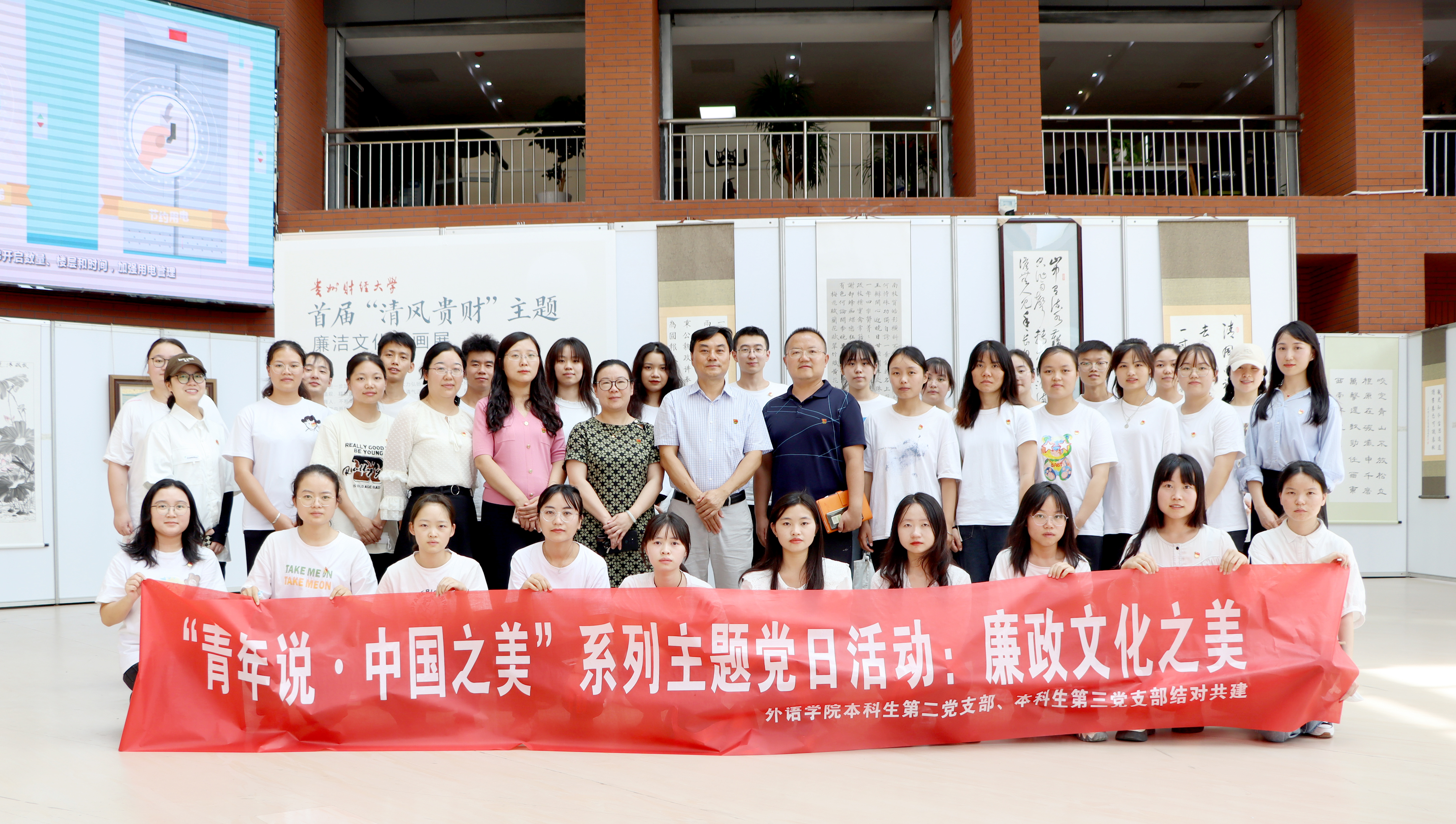 8月30日下午,外语乐鱼(中国)官方本科生第二党支部、本科生第三党支部在花溪校区立德楼廉洁文化展厅开展结对共建主题党日活动。本次活动主题为“青年说·中国之美”——廉政文化之美。活动由外语乐鱼(中国)官方本科生第二党支部书记黄娜、本科生第三党支部书记陈欢带队主持,外语乐鱼(中国)官方党委书记胡张林,党委副书记王钊、汪欢,纪委书记李平共同参与。