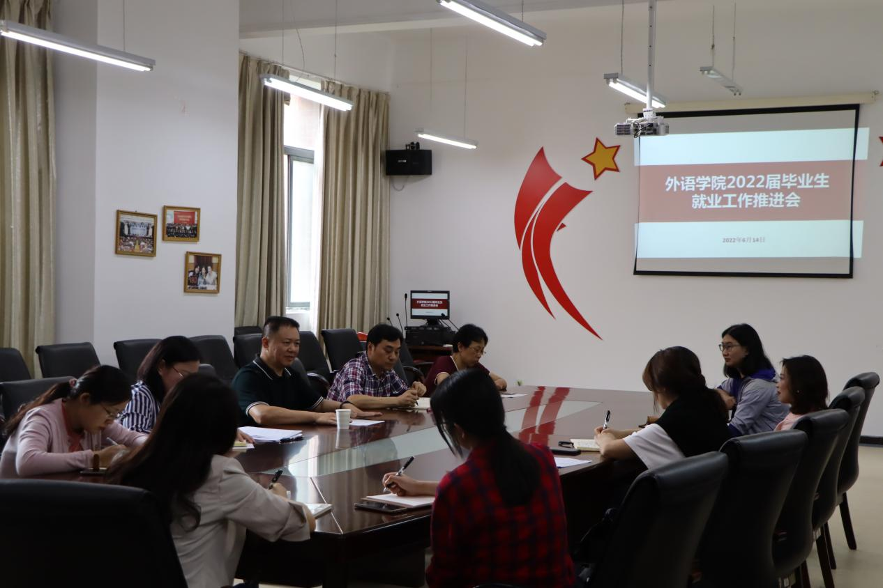 6月14日中午,外语乐鱼(中国)官方在励学楼301会议室召开了2022届毕业生就业工作推进会,校党委副书记杨勇出席会议,外语乐鱼(中国)官方领导班子、各系部主任、全体研究生导师、全体未就业本科毕业生就业导师、毕业班辅导员参加了此次会议。会议由乐鱼(中国)官方党委副书记汪欢主持。