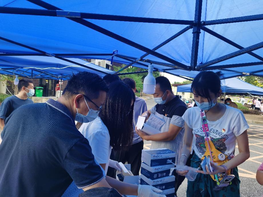 务实行动,防疫举措下沉到第一线。志愿者小组在学校党委组织部、人事处的统一调度下,在各志愿服务小组长的直接领导下,努力与时间赛跑,确保在第一时间完成任务,确保不错一户、不漏一人。通过以人事处、后勤处等相关部门提供数据为基础,以楼栋为单位,以楼层为“网格”,准确全面掌握学校博士楼、公租房住户现状,逐一建立抗原、核酸检测台账。对“黄码”人员、行动不便老人等特殊群体做好特别服务,提供帮助,充分传递关怀关爱。截至目前,累计完成服务抗原检测6轮、核酸检测3轮,服务人数11400余人次。