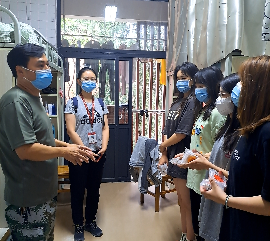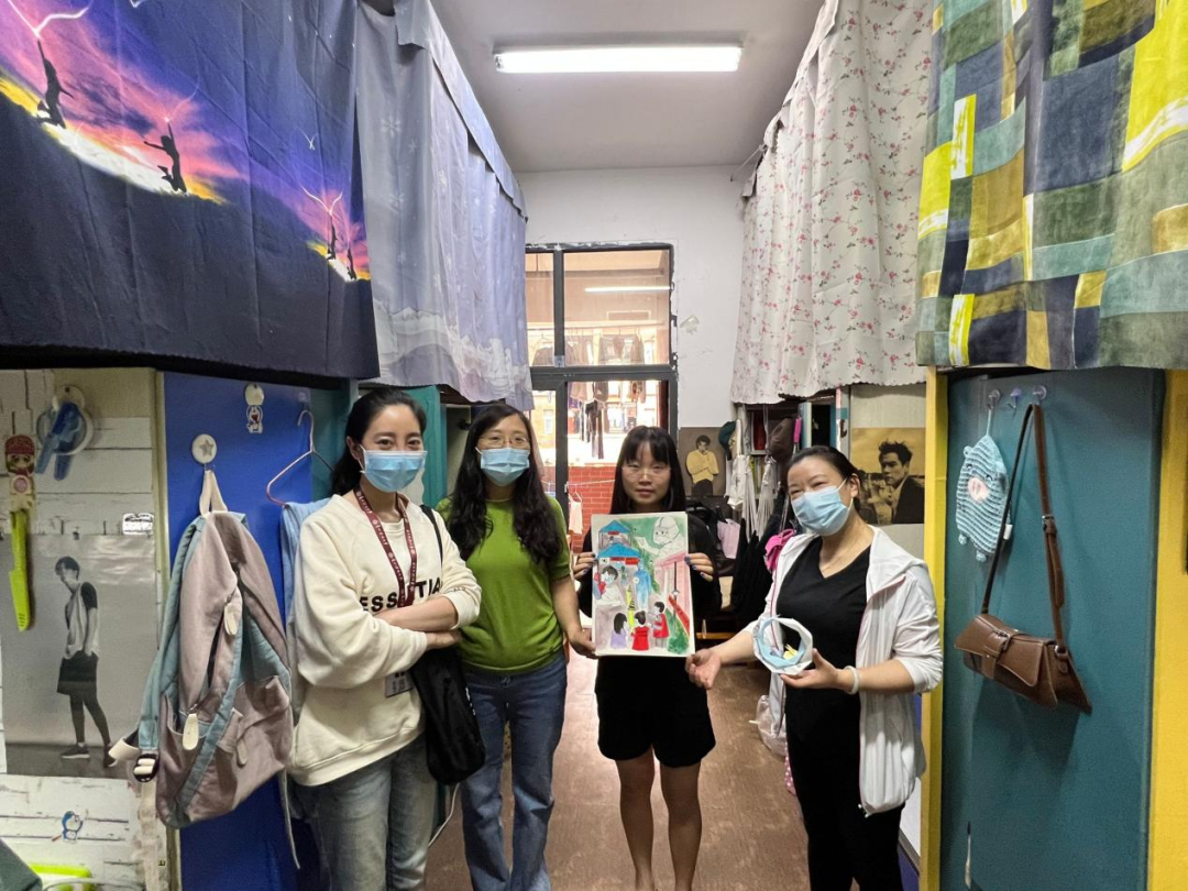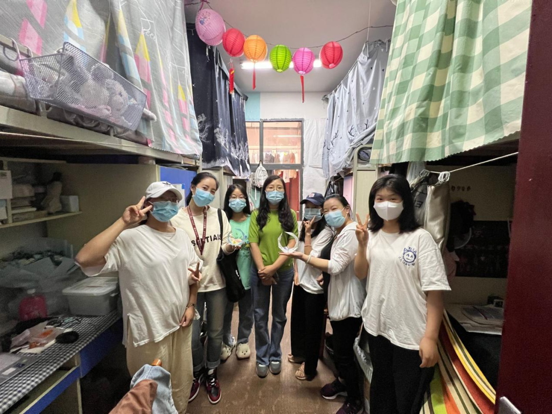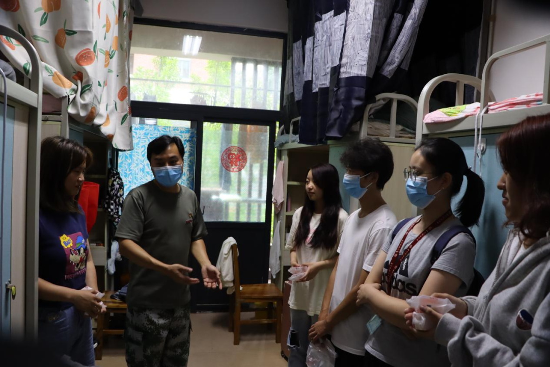 在玉兰苑、丹桂苑研究生宿舍,张虹院长叮嘱研究生同学们要积极配合学校管理和疫情防控工作,在认真做好个人防护的同时也要静下心来,认真读书,增强学术科研能力和翻译技能。
