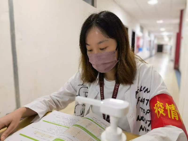 疫情防控志愿者岗位上,她是认真负责的卫生监督员。