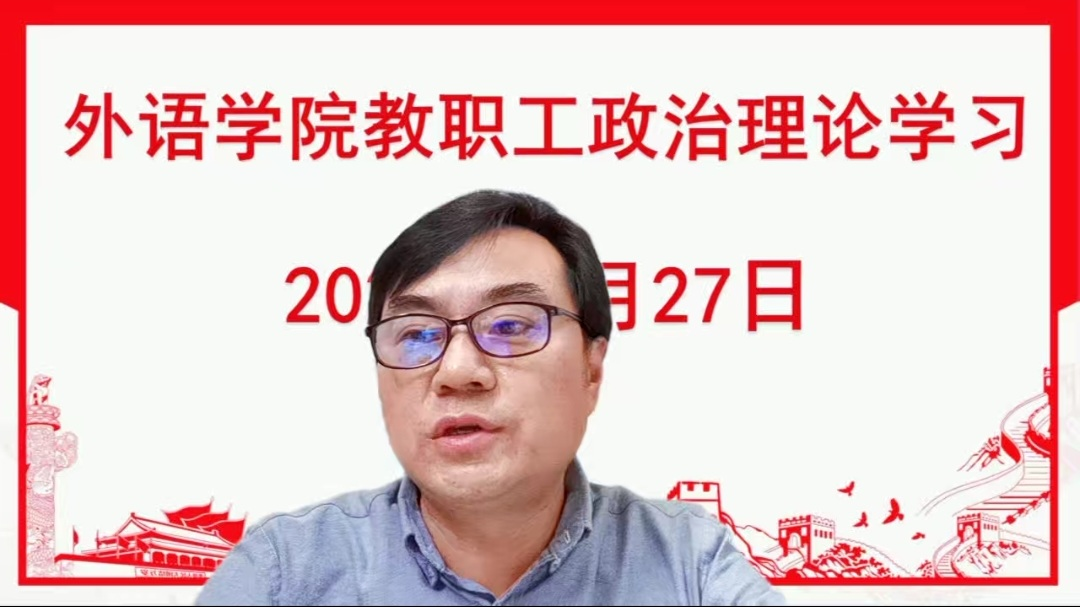 当前疫情防控形势依然严峻,抗疫任务艰巨,外语乐鱼(中国)官方教职工闻令而动、听令而行,立足岗位职责,有的坚守岗位一线,有的参与社区抗疫一线,为打赢疫情防控攻坚战贡献力量。在奋战疫情防控的同时,为抓好疫情期间全院教职工的理论学习,9月27日下午召开线上全院政治理论学习会,会议由乐鱼(中国)官方党委书记胡张林主持,党委副书记王钊、党委副书记汪欢、纪委书记李平、副院长雷晴岚及全体教职工参加。