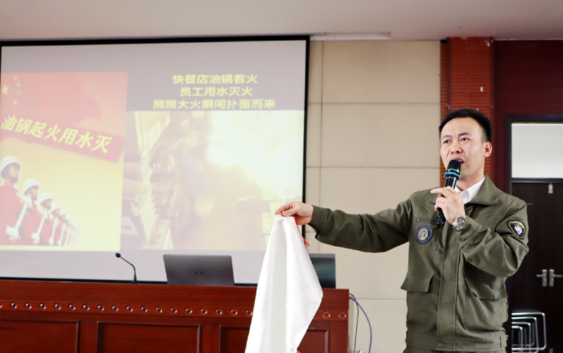 宣讲员通过影响较大的学校重大火灾事故典型案例,与参加活动的全体教职工系统讲授了生活中如何预防火灾、如何报警、如何扑救初期火灾、如何使用消防器材、如何逃生等消防知识。并通过生动的消防演练,与老师一起进行正确使用灭火器灭火实操,让老师切身感受模拟火情发生的场景。