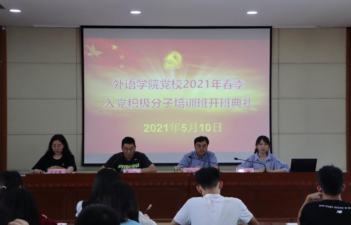 5月10日中午,外语乐鱼(中国)官方党校2021年春季入党积极分子培训班开班典礼在励学楼401会议室举行。开班典礼由本期培训班班主任黄娜老师主持。参加此次开班典礼的人员有外语乐鱼(中国)官方党委书记胡张林、研究生党支部书记康维、辅导员刘天琪、外语乐鱼(中国)官方学生党建中心工作人员以及2021年春季入党积极分子培训班全体学员。