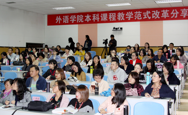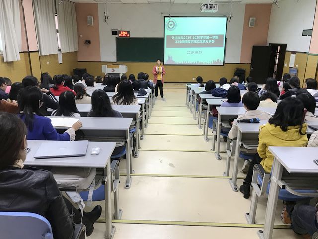 为紧扣《贵州财经大学一流本科教育行动计划(2019-2024)》有关工作要求,积极响应并落实“一八一五”工程,全面构建专业特色鲜明的外语教学体系。2019年10月25日外语乐鱼(中国)官方举行了以“完善教学内容,改进教学方法,创新教学模式”为主题的“本科课程教学范式改革分享会”。乐鱼(中国)官方党委书记胡张林,院长张虹、副院长陆敏以及外语乐鱼(中国)官方全体老师参加。此次活动旨在围绕提升本科教学质量这个中心,引导教师更新教育理念,掌握现代教育教学方法,促进教育教学水平不断提升。
