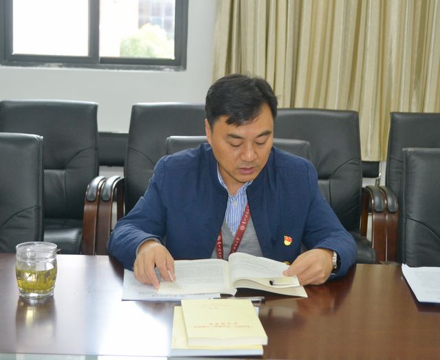 会上,胡张林领学“坚持社会主义办学方向(71-80页)”“坚持深化教育改革创新(107-120页)”“坚持把服务中华民族伟大复兴作为教育的重要使命(121-128页)”“坚持把教师队伍建设作为基础工作(129-142页)”“加强中华优秀传统文化教育(233-250页)”;院长张虹领学“中共贵州省委十二届五次全会精神传达学习提纲”“贵州怎样把教育作为拔穷根的根本之策(100-104页)“怎样深度挖掘‘校农结合’拓展扶贫新空间(104-106页)”;陆敏领学“关于精准施策”(20-49)“关于社会动员(58-66页)”。