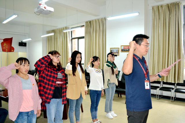 按照(中国共产主义青年团发展团员工作细则》,结合本学年度新团员发展计划,经乐鱼(中国)官方团委考察审核、研究决定:批准彭明杰、吴发秀、谢田田、刘旭、陈蝶蝶五名青年学生加入中国共产主义青年团。并于2019年9月18日13:00在励学楼301举行新团员入团宣誓仪式。胡张林书记和康维老师出席此次仪式。