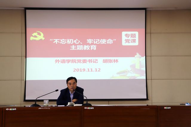 为深入贯彻落实“不忘初心,牢记使命”主题教育,11月12日,我院党委书记胡张林在401会议室为全院教工党员开展题为“牢记身份,尽职担当,在不忘初心,牢记使命中锤炼党性”的主题讲座。