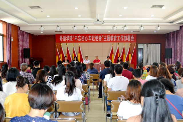 外语乐鱼(中国)官方党委书记胡张林作外语乐鱼(中国)官方主题教育工作部署安排,他指出一要提高政治站位,深刻认识开展主题教育的重大意义;二要坚持善作善成,高标准高质量把四项重点措施贯穿主题教育全过程;三要加强组织领导,确保主题教育取得实效。