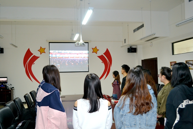 2019年4月30日上午10:30,外语乐鱼(中国)官方团委组织优秀团干、优秀团员以及青年学生代表共20名在励学楼301收看纪念五四运动100周年大会电视直播。