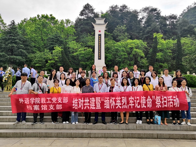 为永远铭记为民族独立、人民解放和国家富强、人民幸福作出巨大贡献和牺牲的英雄烈士,努力营造传承英烈精神、树立远大理想、奋进新时代的良好氛围,加强爱国主义教育和革命传统教育,4月26日,外语乐鱼(中国)官方教工党支部同档案馆党支部赴黔灵山公园解放贵州革命烈士纪念碑广场开展结对共建暨“缅怀英烈 牢记使命”祭扫活动。