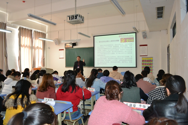 2018年11月26日上午12:20分,外语乐鱼(中国)官方党委副书记王钊在励学楼311教室为我院入党积极分子上题为“在新形势下如何坚定党的理想信念”的党课。