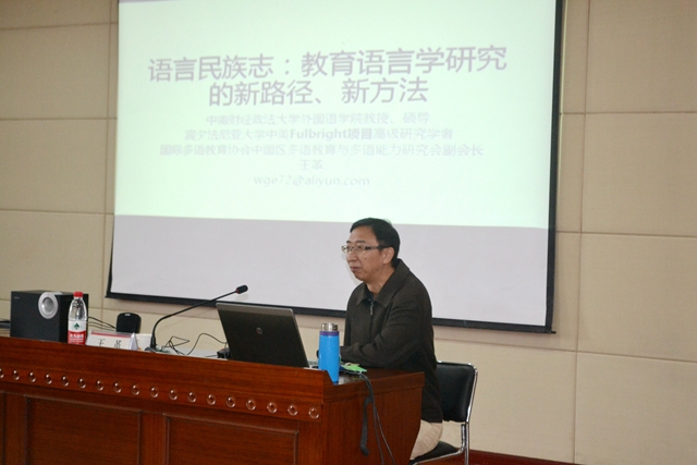 讲座过程中,王革教授图文并茂地介绍了学术研究的方法、路径和态度的重要性,对青年教师做研究提出了切实可行的建议;然后分析了教育语言学视角下语言民族志发展的历史、现状、面临的局限和前景;最后,根据王革教授结合自身实际情况,分享了个人的研究感悟和深刻思考。他强调,在学术研究方面,要有一个信念,一份坚持,做到眼观六路、耳听八方,应该积极利用各种学习机会,提高自己的专业水平。