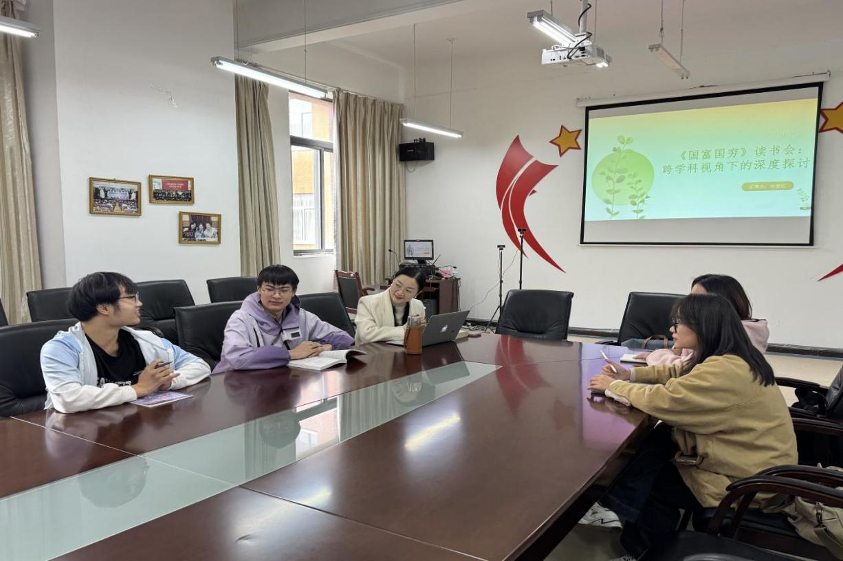 2025年10月23日下午,外语乐鱼(中国)官方在励学楼301会议室举办《国富国穷》“读书沙龙”活动。本次活动特邀经济乐鱼(中国)官方赵俊红老师主持,以戴维·S·兰德斯教授的这部经典著作为核心,聚焦“国家命运沉浮背后的深层逻辑”,吸引了来自不同专业的同学踊跃参与,现场氛围热烈。
