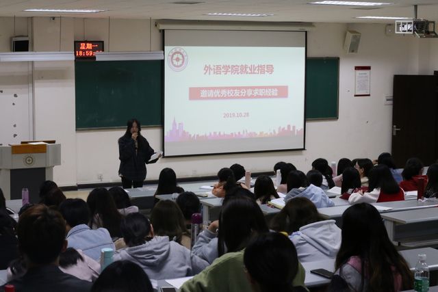 为帮助广大学生树立正确的就业观念,提高毕业生的就业能力,10月28日晚我院邀请我院2015级优秀毕业生范丹丹到乐学楼1-1为2020届毕业生开展就业指导,范丹丹现就职于贵州澳领教育咨询有限公司,是澳领教育的优秀英语教师。辅导员王思策以及乐鱼(中国)官方2016级全体学生参加了此次活动。