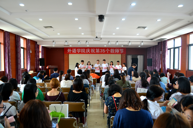 9月10日,外语乐鱼(中国)官方在励学楼401会议室召开教职工大会,庆祝第35个教师节,院长张虹主持会议。